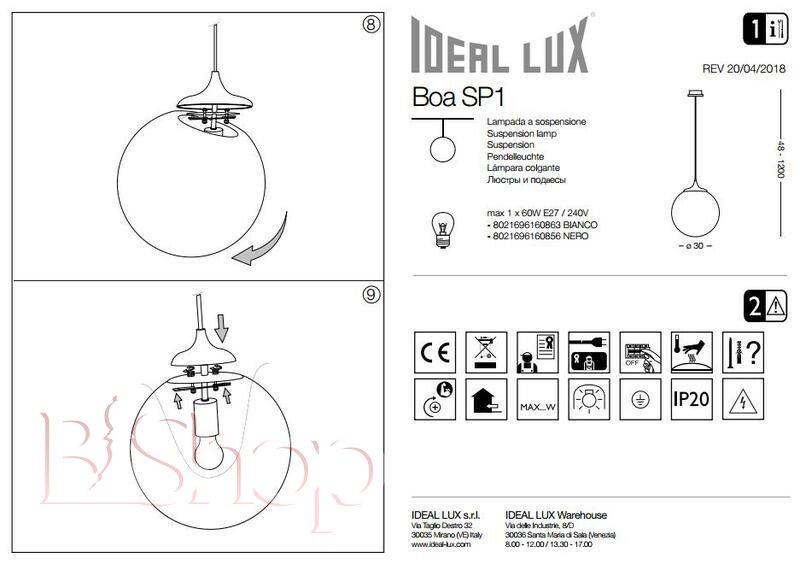 Кількість ламп: 1. Тип цоколя: E27. Висота (див): 1200. Потужність лампи (Вт): 60. Діаметр (див): 30.