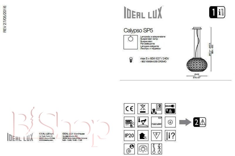 Підвісний світильник Ideal Lux CALYPSO SP5 (044200) (41804)