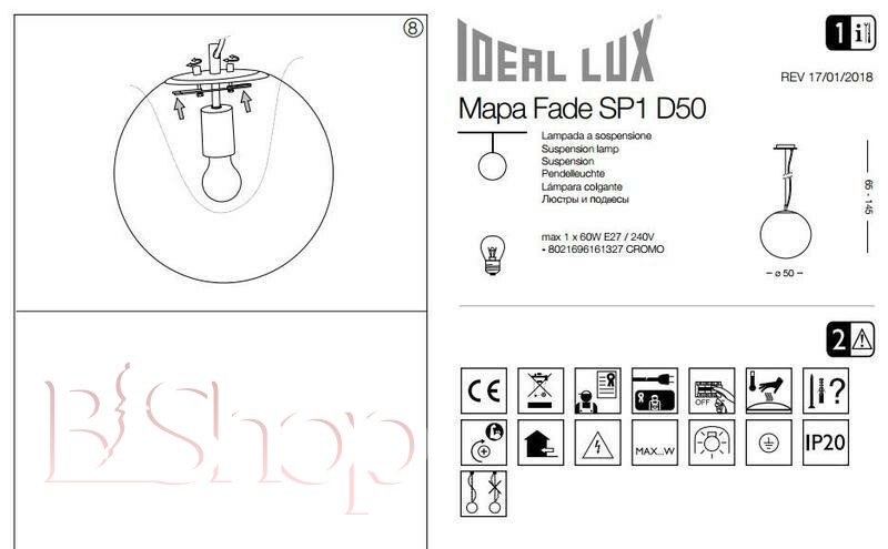 Підвісний світильник Ideal Lux MAPA FADE SP1 D50 (161327) (13370)
