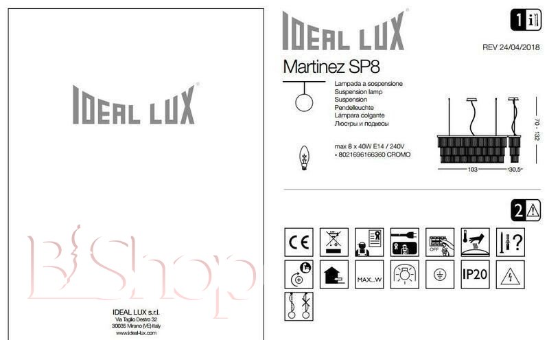 Підвісний світильник Ideal Lux MARTINEZ SP8 (166360) (13420)