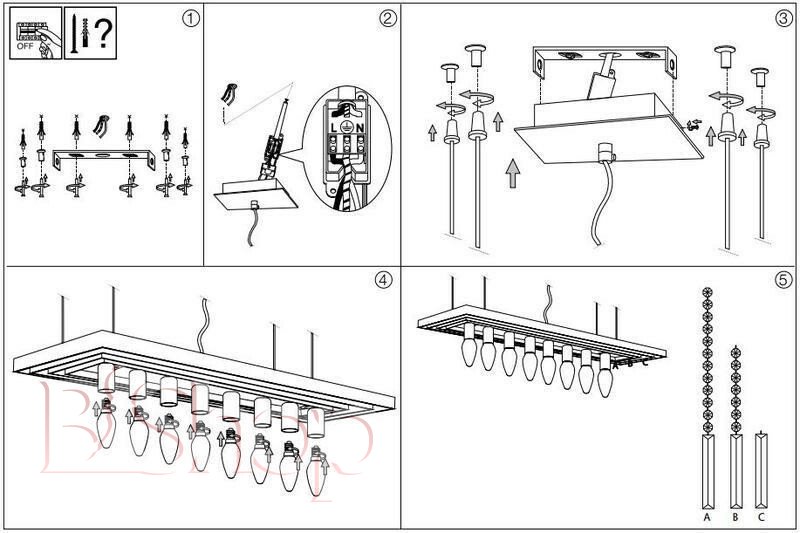 Кількість ламп: 8. Тип цоколя: E14. Висота (див): 132. Ширина (див): 30.5. Потужність лампи (Вт): 40. Довжина (див): 103.