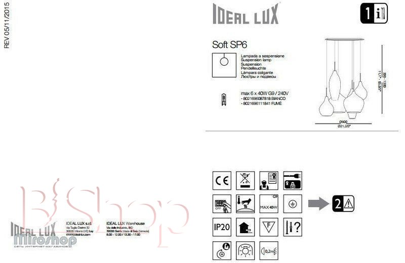 Підвісний світильник Ideal Lux SOFT SP6 FUME (111841) (87963)