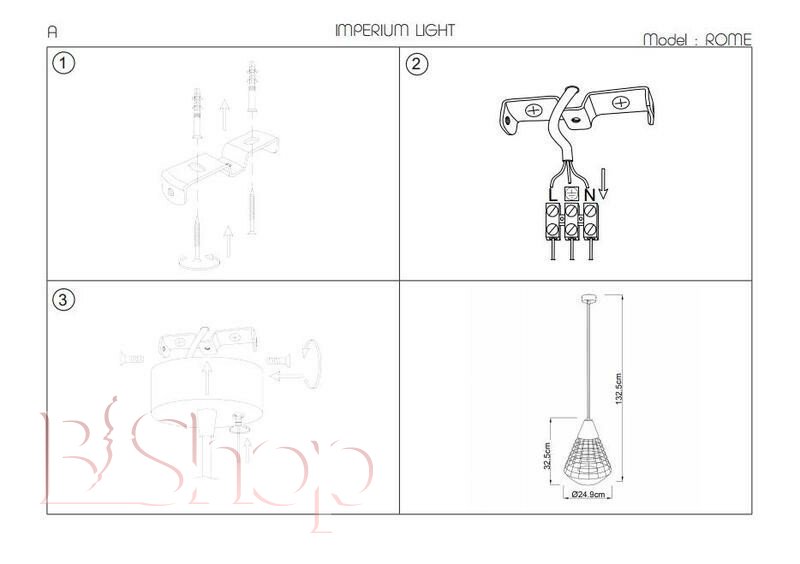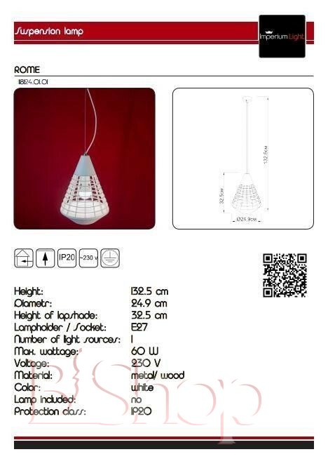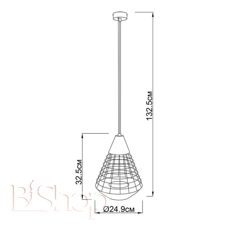Кількість ламп: 1. Тип цоколя: E27. Висота (див): 132.5. Потужність лампи (Вт): 60. Діаметр (див): 24.9.