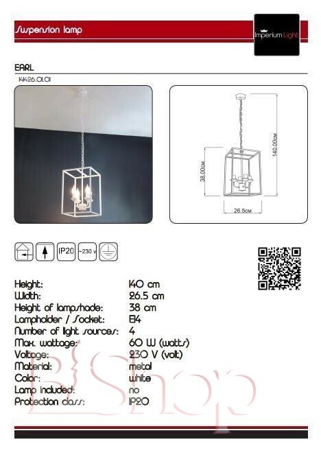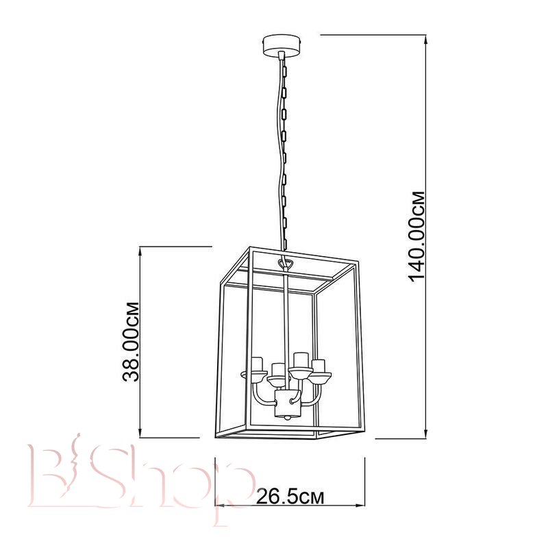 Кількість ламп: 4. Тип цоколя: E14. Висота (див): 140. Ширина (див): 26.5. Потужність лампи (Вт): 60.
