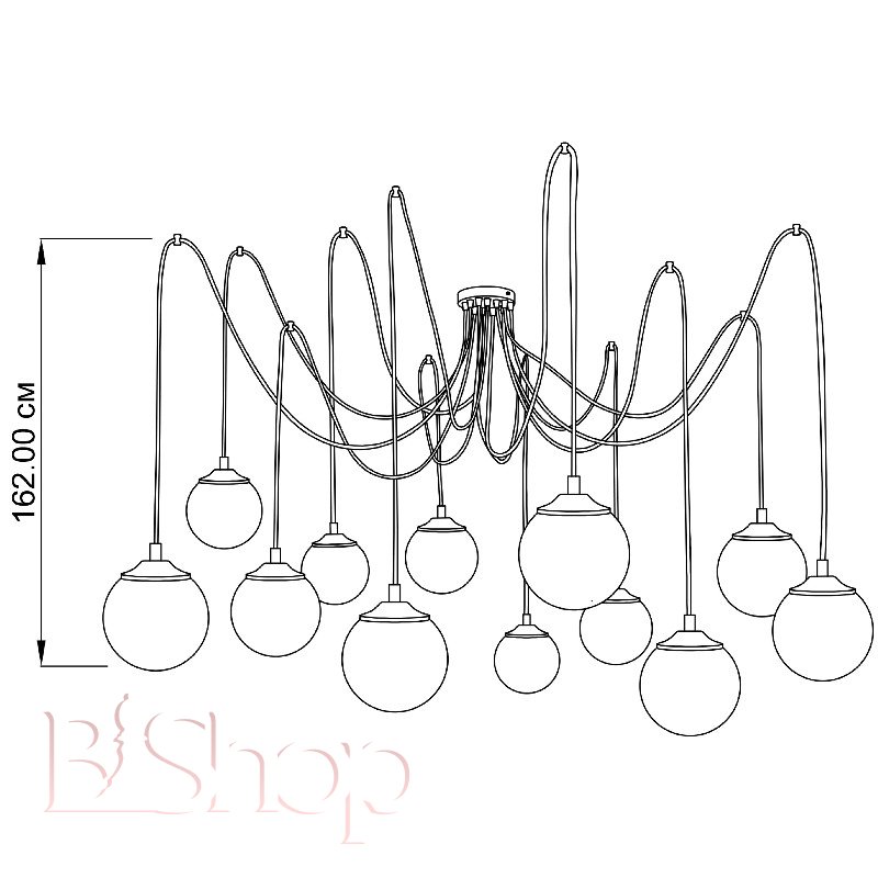 Кількість ламп: 12. Тип цоколя: E14. Висота (див): 162. Потужність лампи (Вт): 40.