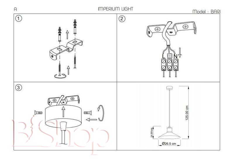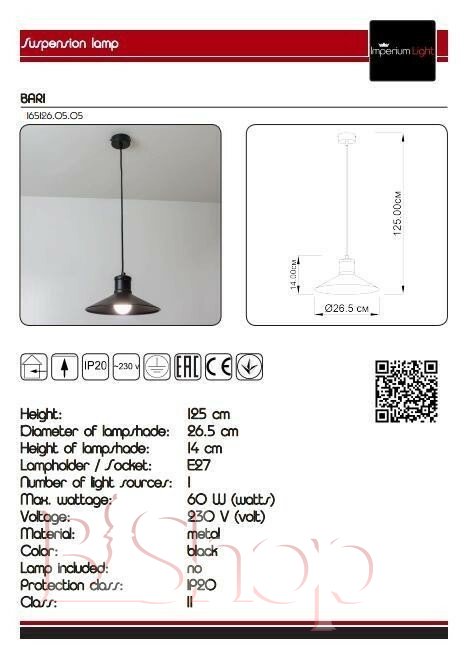 Кількість ламп: 1. Тип цоколя: E27. Висота (див): 125. Потужність лампи (Вт): 60. Діаметр (див): 26.5.