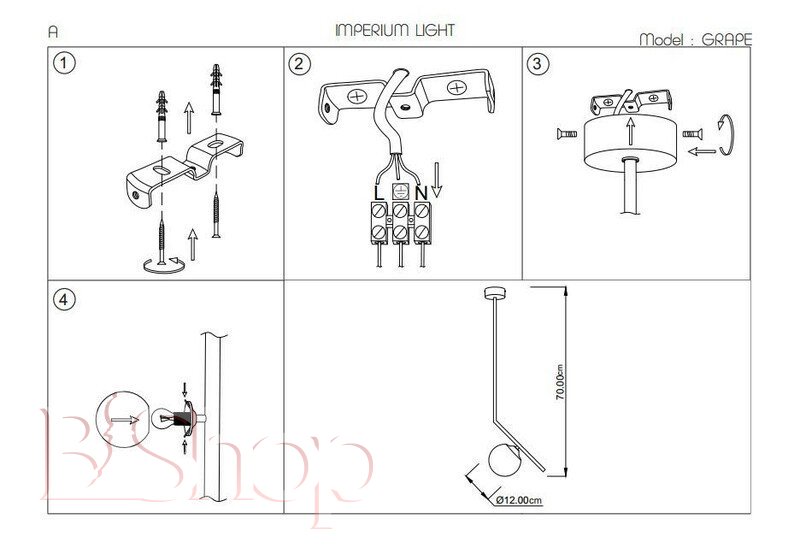 Кількість ламп: 1. Тип цоколя: E14. Висота (див): 70. Потужність лампи (Вт): 40.