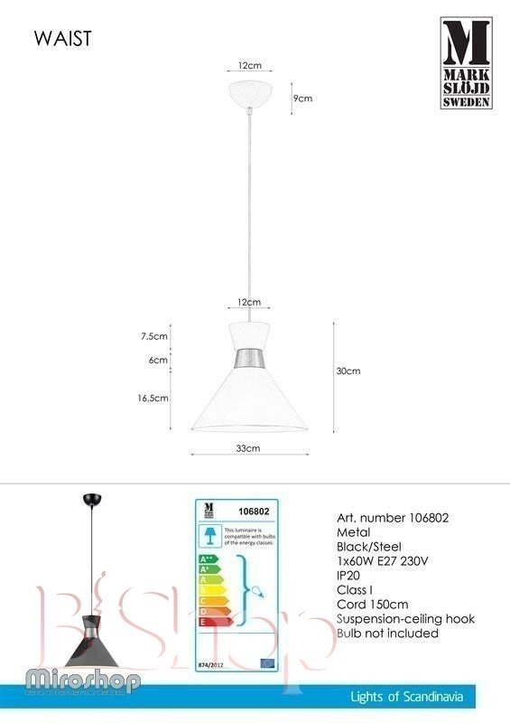 Підвісний світильник Markslojd 106802 WAIST (94455)