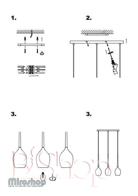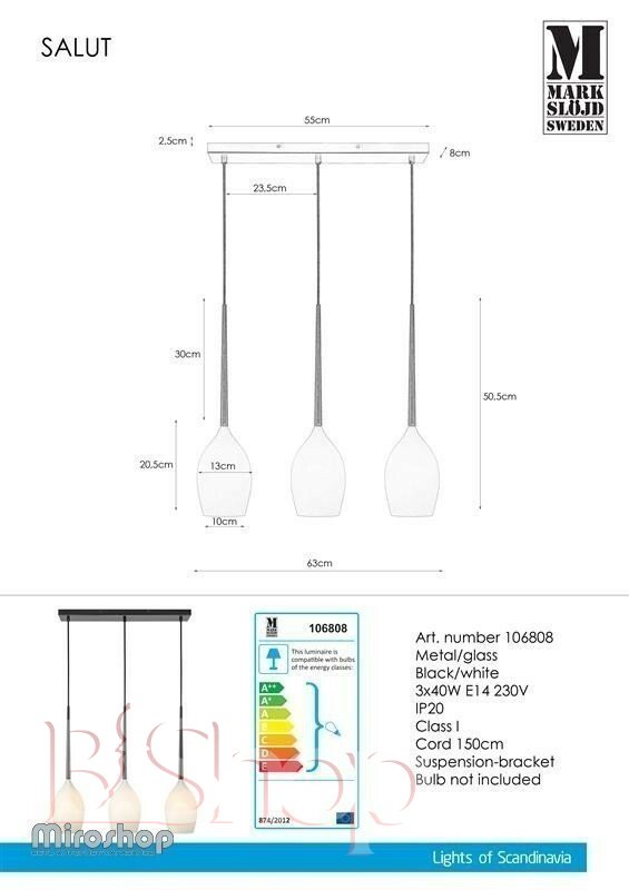 Кількість ламп: 3. Тип цоколя: E14. Висота (див): 150. Ширина (див): 14. Потужність лампи (Вт): 40. Довжина (див): 63.