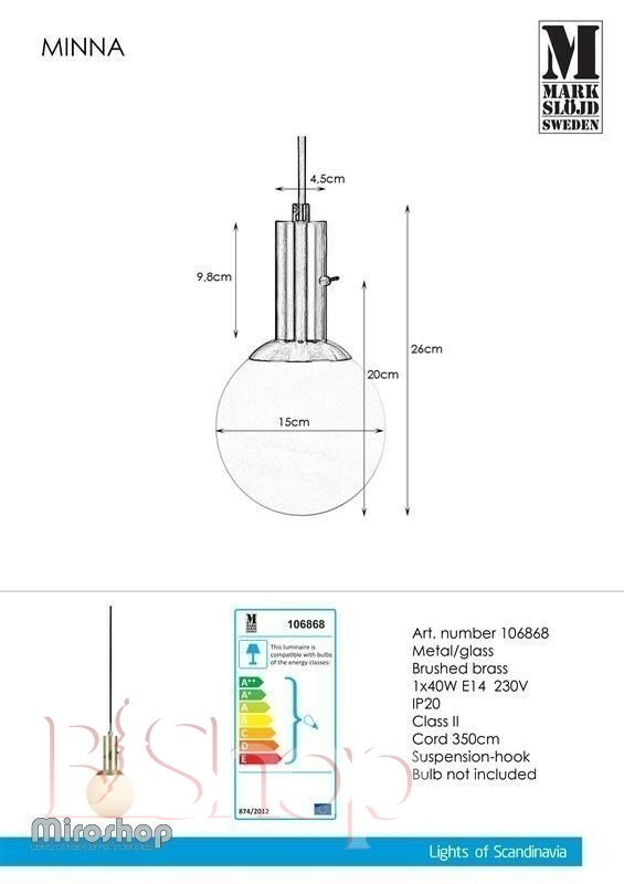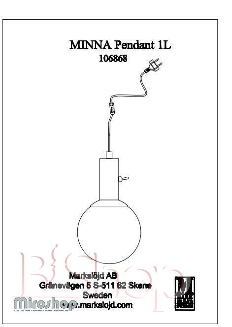 Підвісний світильник Markslojd 106868 MINNA (94466)