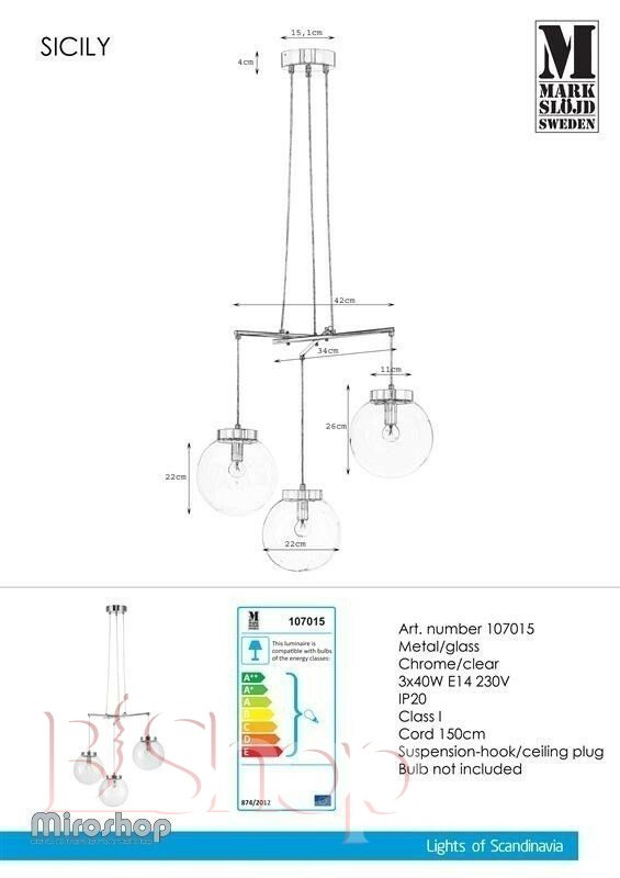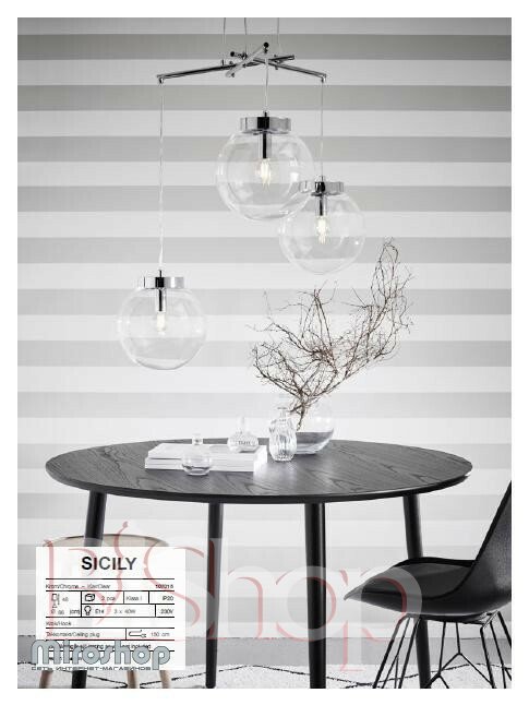 Кількість ламп: 3. Тип цоколя: E14. Висота (див): 48. Потужність лампи (Вт): 40. Діаметр (см): 66.