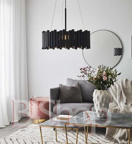 - Колір плафонів і підвісок: Чорний