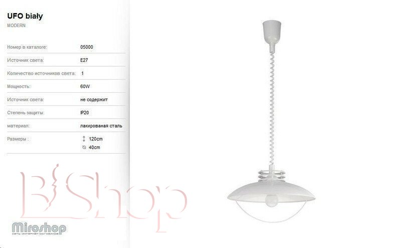 - Гарантія: 1 рік на електропроводку світильника