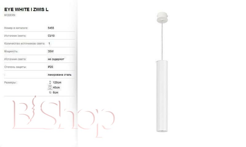 Кількість ламп: 1. Тип цоколя: GU10. Висота (див): 120. Потужність лампи (Вт): 35. Діаметр (див): 5.5.