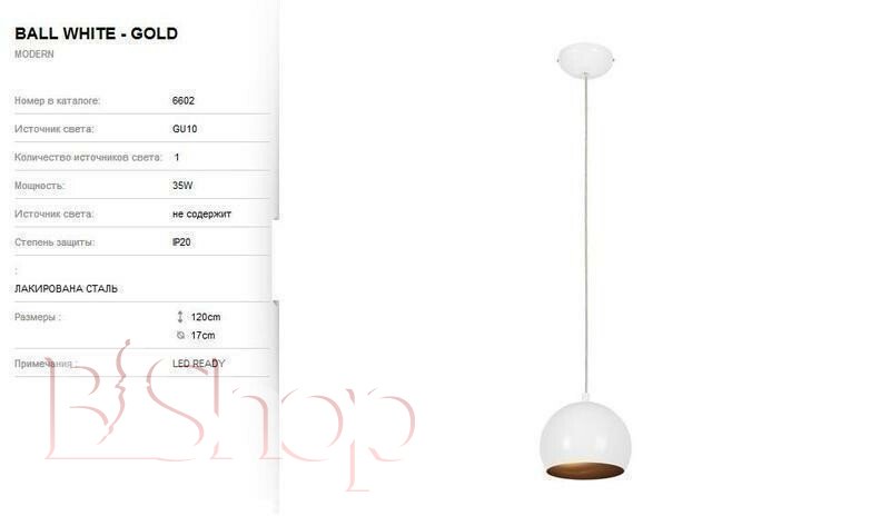 Підвісний світильник Nowodvorski 6602 BALL White-Gold (78544)