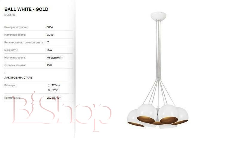 Кількість ламп: 7. Тип цоколя: GU10. Висота (див): 120. Потужність лампи (Вт): 35. Діаметр (див): 52.
