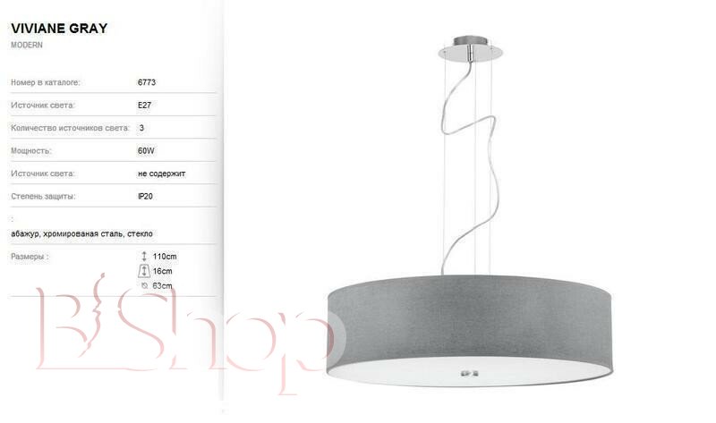 Підвісний світильник Nowodvorski 6773 VIVIANE GRAY (84784)