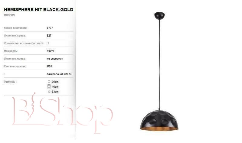 Підвісний світильник Nowodvorski 6777 HEMISPHERE HIT Black-Gold (84786)
