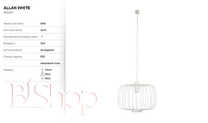 Підвісний світильник Nowodvorski 6940 ALLAN White (84841)