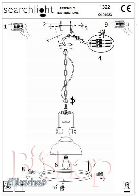 Підвісний світильник Searchlight 1322CU Industrial Pendants (21667)