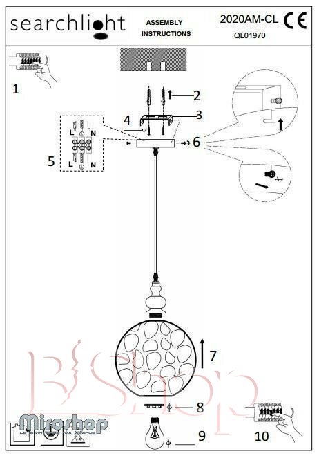 Підвісний світильник Searchlight 2020CL Indiana (21038)