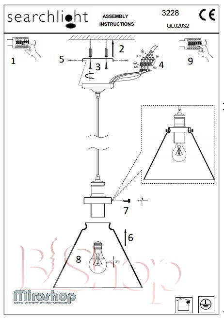 Підвісний світильник Searchlight 3228BK Pyramid (21023)