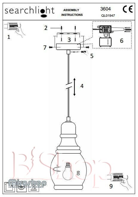 Підвісний світильник Searchlight 3604SM Olsson (20795)