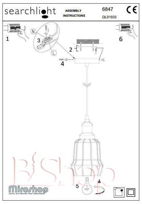Підвісний світильник Searchlight 6847CC Bell Cage (20816)
