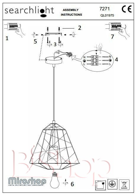 Підвісний світильник Searchlight 7271CC Geometric Cage (20676)