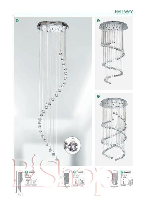 Кількість ламп: 5. Тип цоколя: G9. Висота (див): 80. Потужність лампи (Вт): 40. Діаметр (див): 39.
