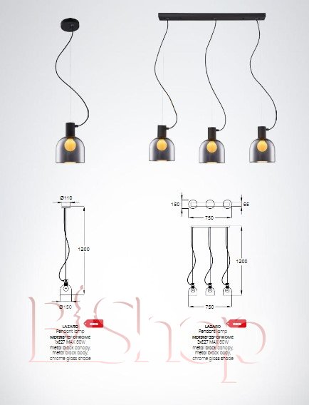 Кількість ламп: 3. Тип цоколя: E27. Висота (див): 120. Ширина (див): 15. Потужність лампи (Вт): 60. Довжина (див): 75.