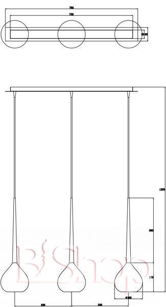 Кількість ламп: 3. Тип цоколя: E14. Висота (див): 120. Ширина (див): 8. Потужність лампи (Вт): 40. Довжина (див): 78.