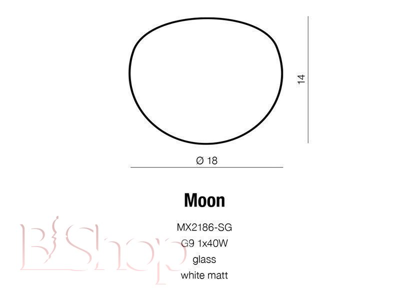 Кількість ламп: 1. Тип цоколя: G9. Висота (див): 14. Потужність лампи (Вт): 40. Діаметр (див): 18.
