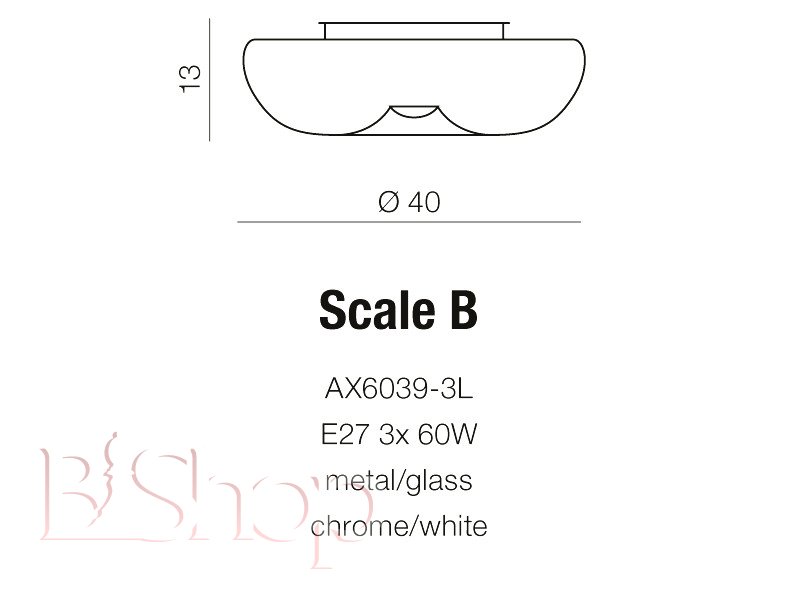 Кількість ламп: 3. Тип цоколя: E27. Висота (див): 13. Потужність лампи (Вт): 60. Діаметр (див): 40.