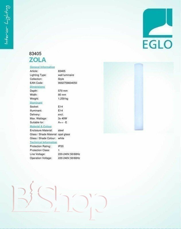 Кількість ламп: 3. Тип цоколя: E14. Ширина (див): 8. Потужність лампи (Вт): 40. Довжина (див): 57.