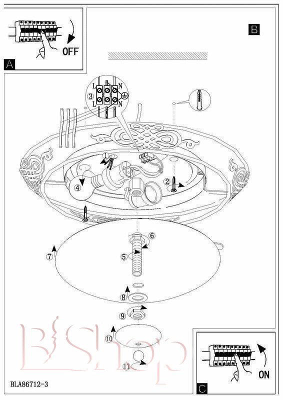 - Кількість ламп: 3 шт