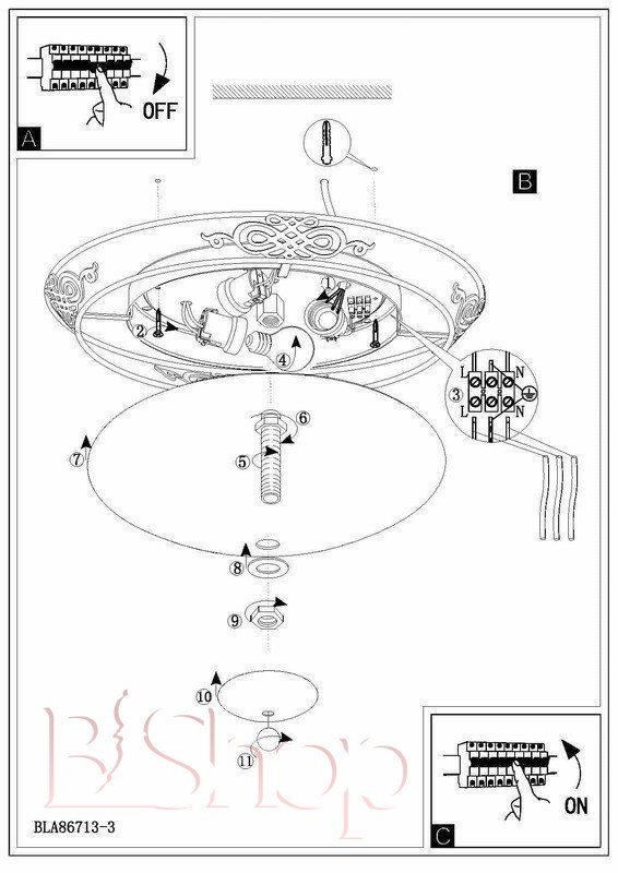 - Кількість ламп: 3 шт
