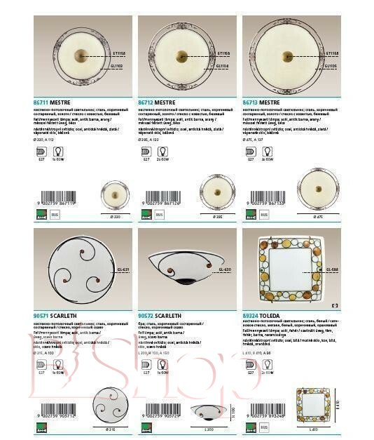 - Матеріал плафонів: Стекло