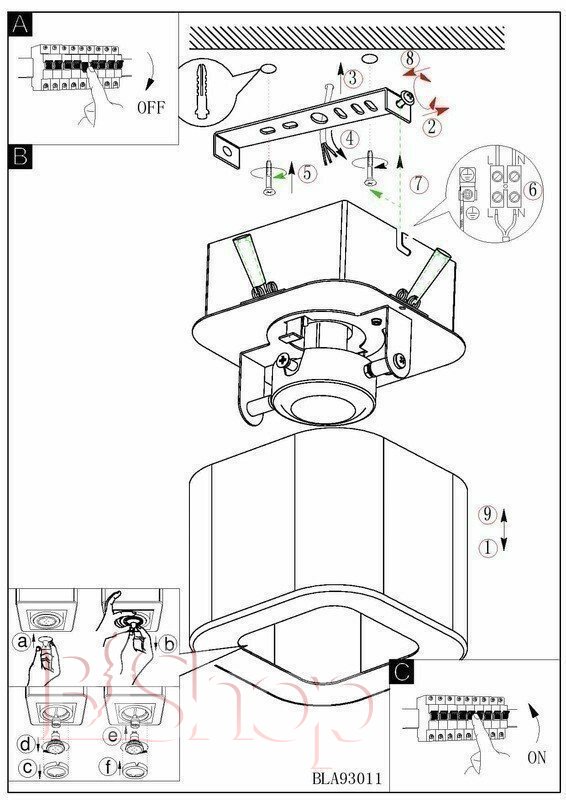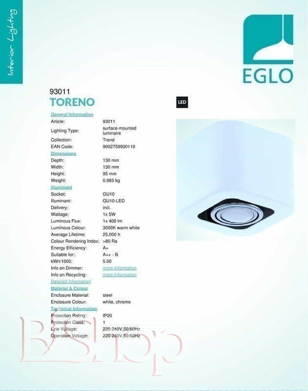 Кількість ламп: 1. Тип цоколя: GU10. Висота (див): 10. Ширина (див): 13. Потужність лампи (Вт): 5. Довжина (див): 13.