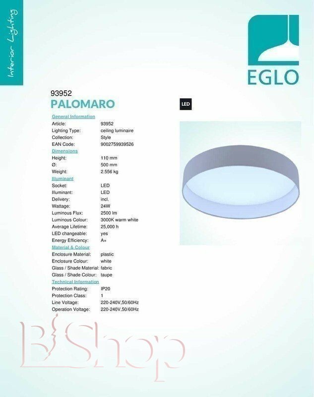 Кількість ламп: 1. Тип цоколя: LED. Висота (див): 11. Потужність лампи (Вт): 24. Діаметр (див): 50.