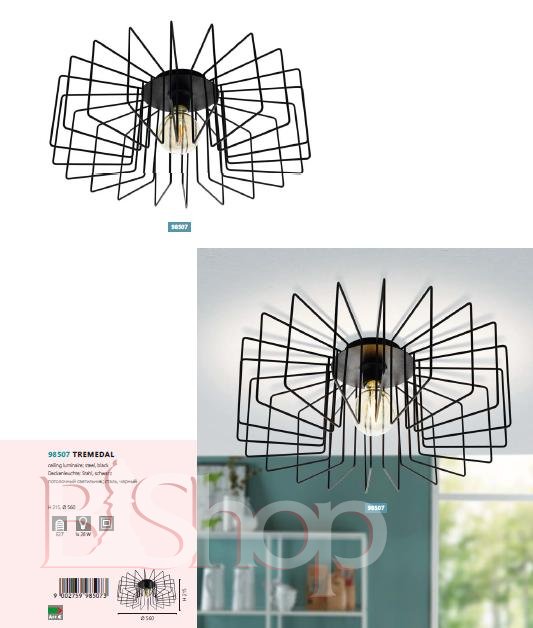 Кількість ламп: 1. Тип цоколя: E27. Висота (див): 21.5. Потужність лампи (Вт): 28. Діаметр (див): 56.