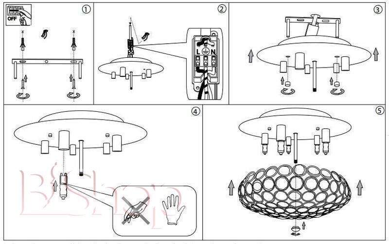 Кількість ламп: 5. Тип цоколя: G9. Висота (див): 16. Потужність лампи (Вт): 40. Діаметр (див): 38.
