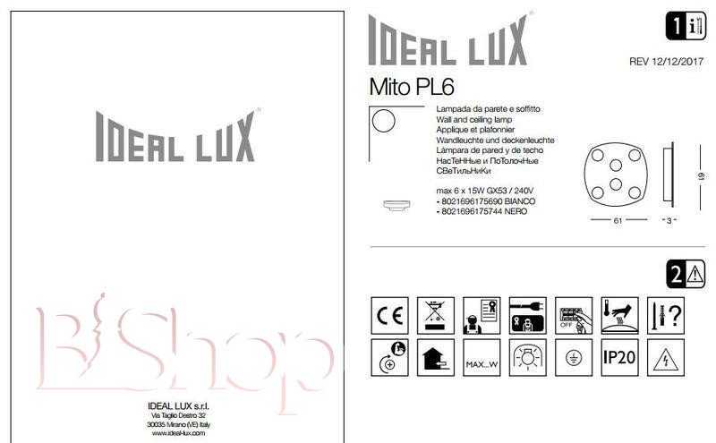 Стельовий світильник Ideal Lux MITO PL6 BIANCO (175690) (13422)