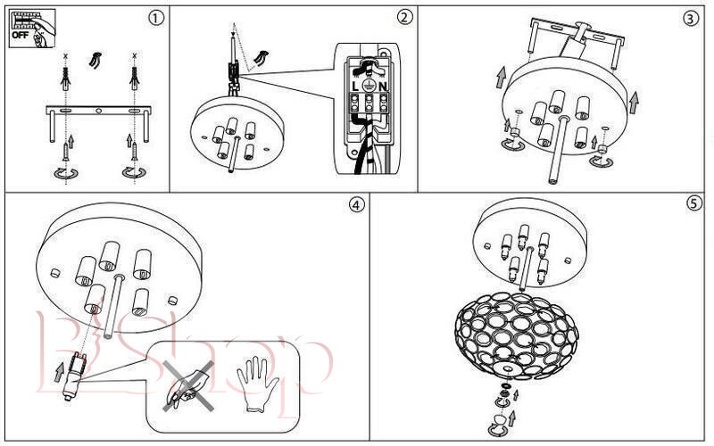 Кількість ламп: 5. Тип цоколя: G9. Висота (див): 15. Потужність лампи (Вт): 40. Діаметр (див): 40.
