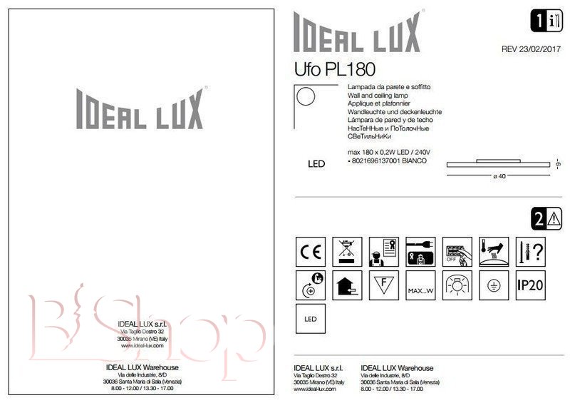 Кількість ламп: 1. Тип цоколя: LED. Висота (див): 6. Потужність лампи (Вт): 36. Діаметр (див): 40.