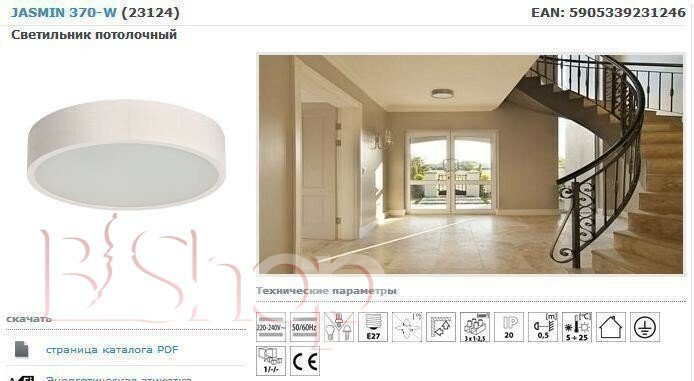 Стельовий світильник Kanlux JASMIN 270-W PLAFON.DREW. max 60W (23123) (84551)