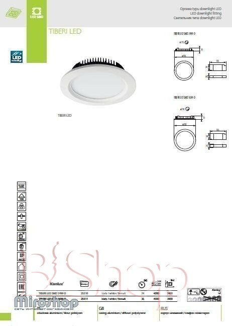 Кількість ламп: 1. Тип цоколя: LED. Потужність лампи (Вт): 36. Діаметр (див): 23. Розмір урізного отвору (див): 21.