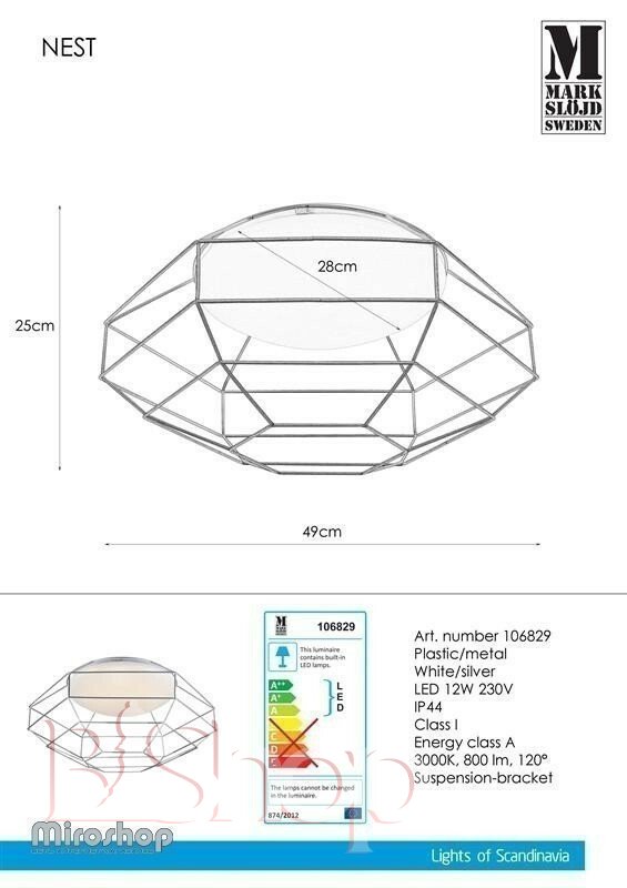 Кількість ламп: 1. Тип цоколя: LED. Висота (див): 29. Потужність лампи (Вт): 12. Діаметр (див): 45.