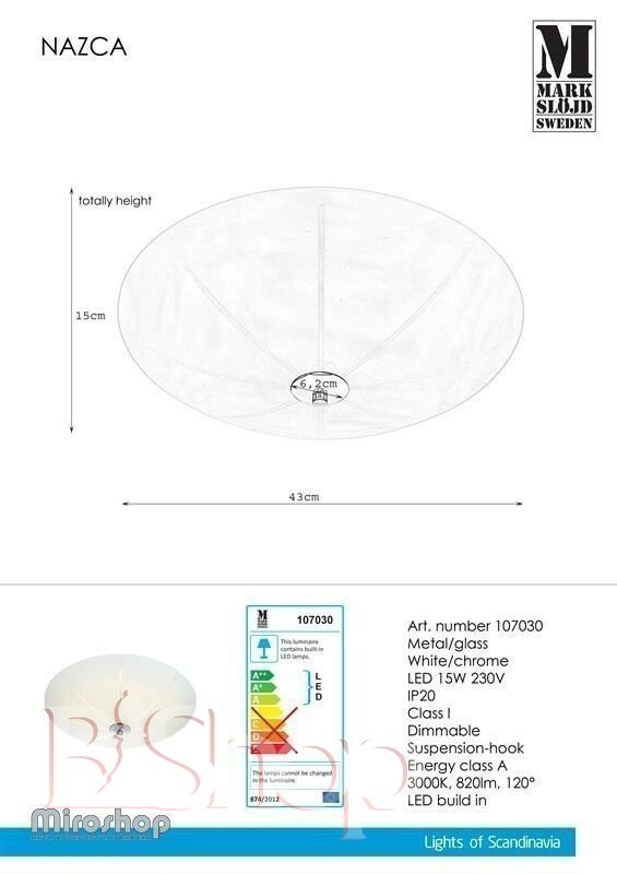 Кількість ламп: 1. Тип цоколя: LED. Висота (див): 15. Потужність лампи (Вт): 15. Діаметр (див): 43.