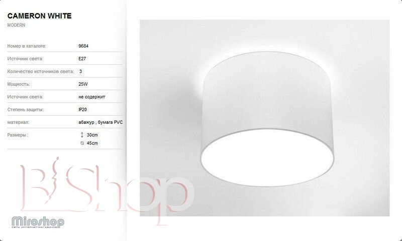 Стельовий світильник Nowodvorski 9684 CAMERON White (93049)